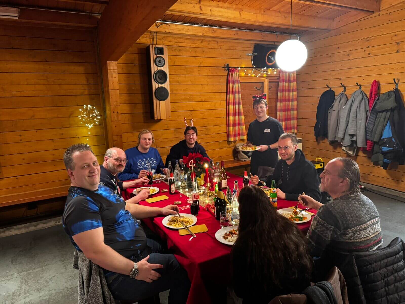 Im Anschluss an das Einpacken startete der gemeinsame Apéro, gefolgt von einem feinem Abendessen in geselliger Atmosphäre, bei dem sich viel Raum für persönliche Gespräche, Rückblicke auf das Jahr und den Austausch über gemeinsame Erfolge bot. Und auch für den einen oder anderen Spaß war natürlich Gelegenheit.