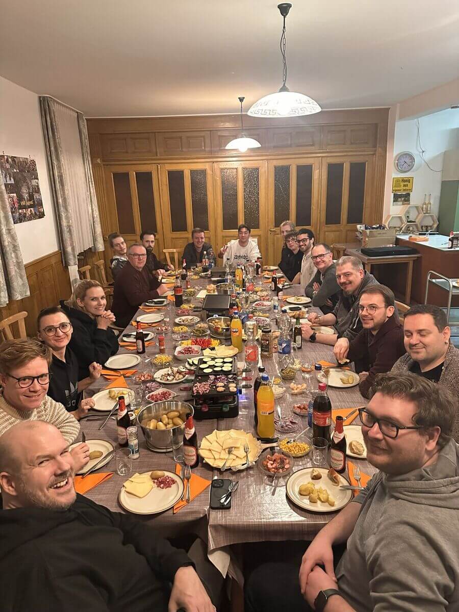 So stand das Hüttenwochenende in St. Blasien ganz im Zeichen von Teamspirit, Austausch und Genuss: Der Freitagabend startete gemütlich mit einem Raclette in entspannter Atmosphäre – der perfekte Auftakt für ein Wochenende voller Energie und guter Gespräche.